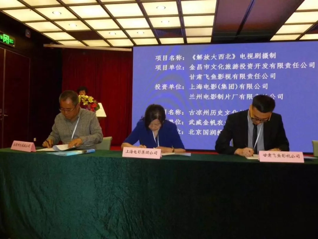 ? 5月10日上午,第十四届中国(深圳)国际文化产业博览交易会在深圳会展中心开幕,开幕当天,金昌市作家鱼全甫创作的40集电视连续剧《解放大西北》与上海电影(集团)有限公司、金昌市文化旅游投资开 发有限责任公司和甘肃飞鱼影视有限责任公司成功签约,该项目是甘肃省此次集中签约20个项目中唯一的影视项目,备受关注。